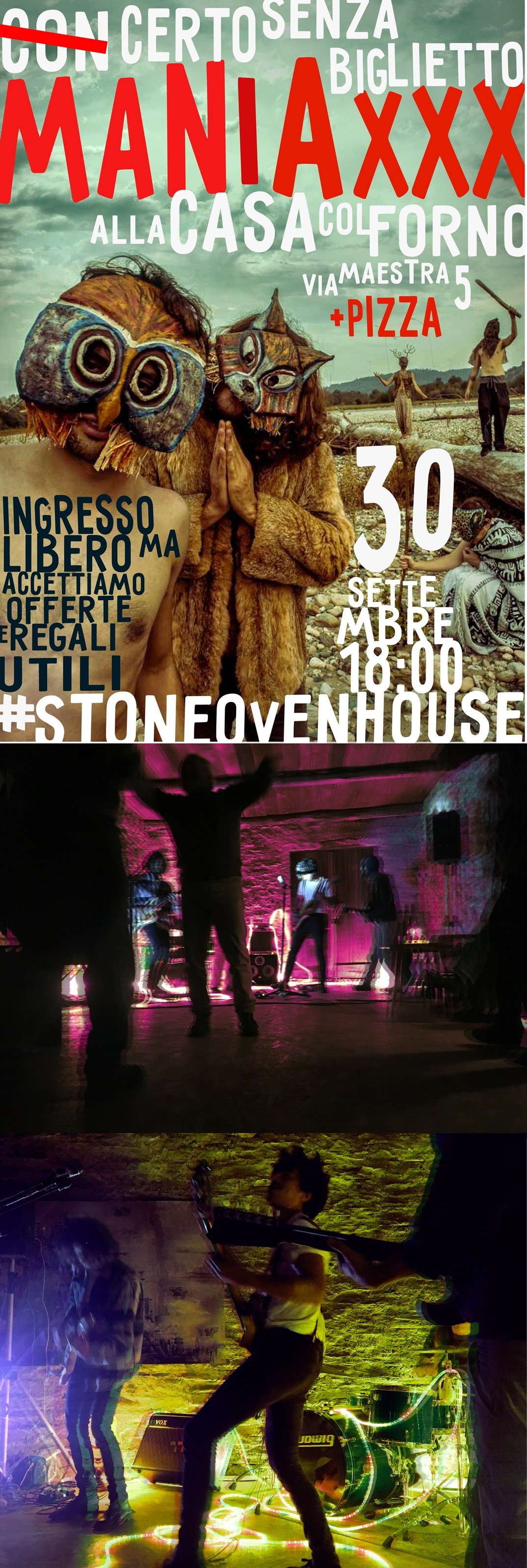 Garage-surfing aquatic grooves, syncopated rhythms, shamanic psychedelia and western digressions. The Maniaxxx are 5 and in the night they play loud music in robbery clothing: 2 guitars and a half, bass, drums, noises and 3 voices.